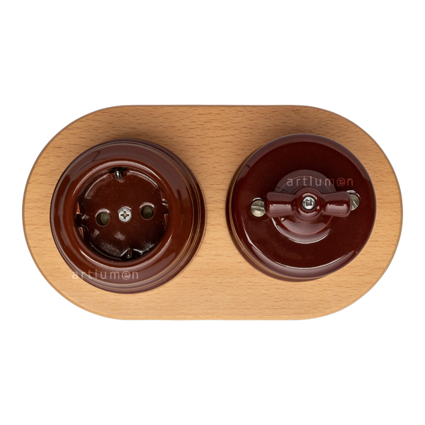 Trägerplatte von geringer Dicke zur Verwendung als Schalterbasis. Ideal für Schalter und Steckdosen aus Porzellan oder Repliken Retro. Betont die Schönheit des darauf angebrachten Schalters. Rundes Holz gebeizt in natürlicher Farbe, für zwei Elemente. Aufputzmontage. Das Holz hat kein Loch um sie je nach Typ und Größe des Schalters bohren zu können.