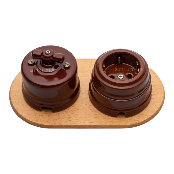 Trägerplatte von geringer Dicke zur Verwendung als Schalterbasis. Ideal für Schalter und Steckdosen aus Porzellan oder Repliken Retro. Betont die Schönheit des darauf angebrachten Schalters. Rundes Holz gebeizt in natürlicher Farbe, für zwei Elemente. Aufputzmontage. Das Holz hat kein Loch um sie je nach Typ und Größe des Schalters bohren zu können.