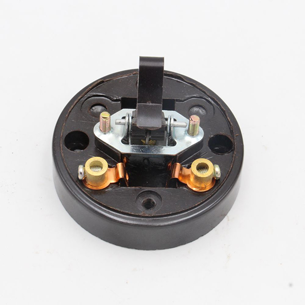 Schalter aus Porzellan antik mit Basis aus Bubingaholz.