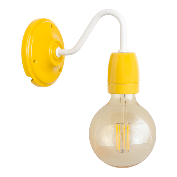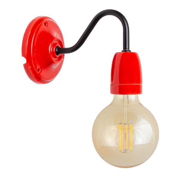 Wandstrahler mit Metallarm lackiert in der Farbe weiß oder schwarz. In ihrem Design wird der klassische gebogene Arm mit dem modernen Touch der Lampenfassung aus Porzellan in kräftigen Farben (intensives rot oder gelb) gemischt. Mit weichen Linien, glänzt der Strahler in jeglicher Ecke. Da die Glühbirne vollständig unbedeckt bleibt, ist es ein idealer Strahler um mit unseren dekorativen Glühbirnen zu glänzen. Wir empfehlen die Glühbirne LED Globe von 95mm Durchmesser.