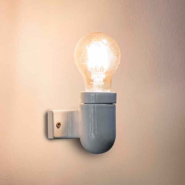 Wandleuchte aus weißem Porzellan. Es zeichnet sich durch seinen zeitlosen Stil aus. Ideal für die Platzierung neben dem Badezimmerspiegel.