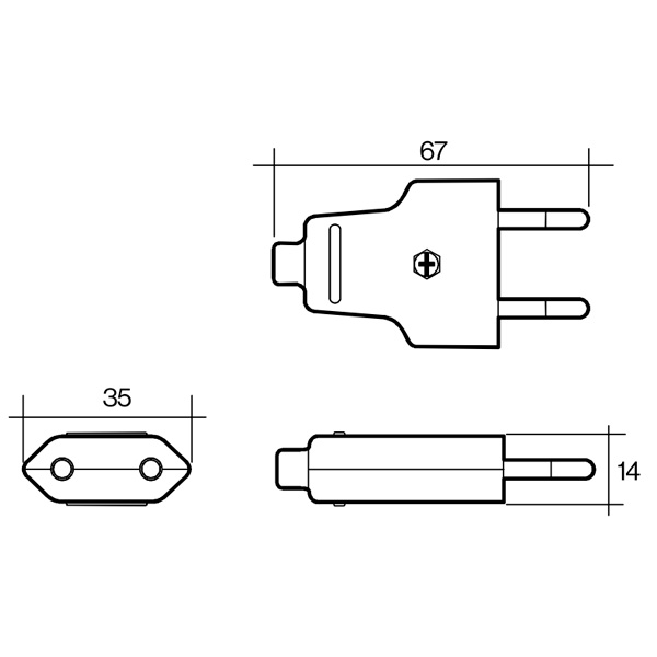 Zweipoliger Stecker (ohne Erdung) in weißer Farbe. Ideal für die Montage von Lampen und elektrischen Geräten. Anschluss des Kabels mit Schrauben. Flexibles Gummi am hinteren Teil für Kabelausgang. Farbe weiß