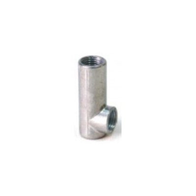 Winkelbuchse hergestellt aus Metall (Zamak) Oberfläche grau matt Mit Innengewinde um zwei Teile einer Leuchte im 90-Grad-Winkel zu verbinden. Gewindesteigung innen 10/100 (Typ universal für Lampen)