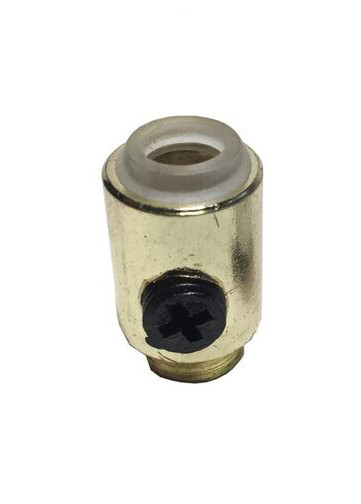Kabelklemme aus goldfarbenem Metall. Perfekter Abschluss für goldfarbene Lampenfassungen. Dekoratives Element, das die Funktion hat das Kabel der Lampenfassung zu fixieren, um zu vermeiden, dass das Gewicht an der Schraube hängt oder Beschädigung bei Zugbelastung.
