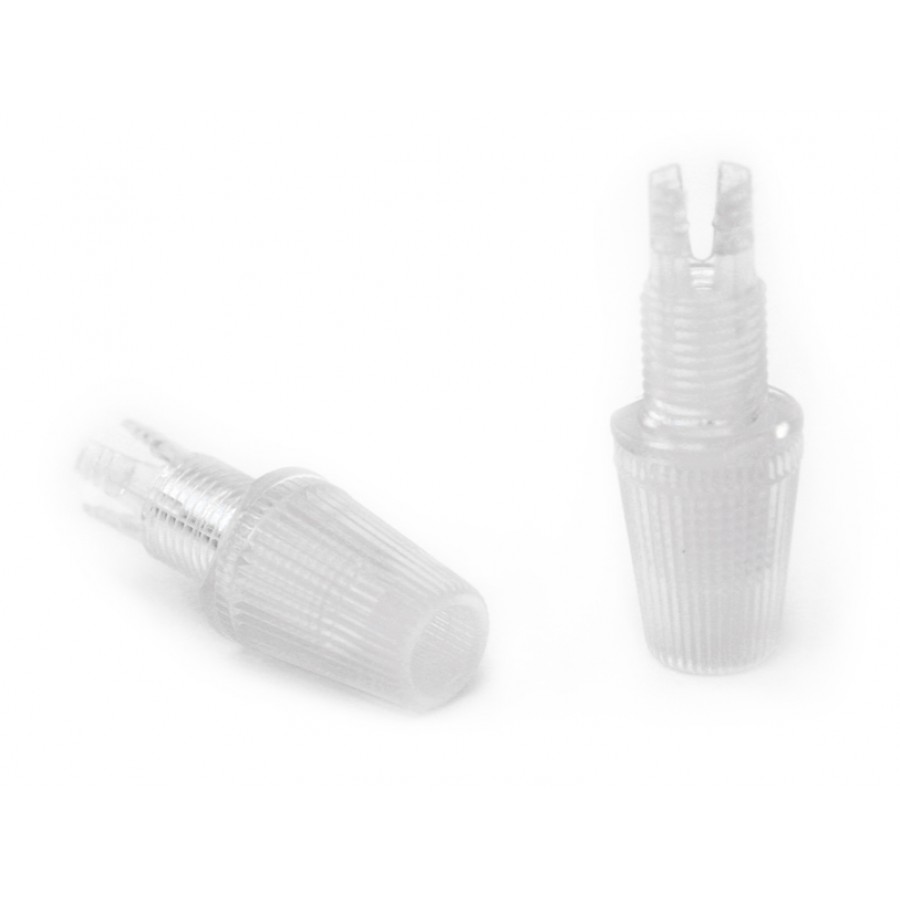 Kabelklemme verstärkt mit Kunststoff transparent. Ist sehr unauffällig an dem Kabel. Dekoratives Element, das die Funktion hat das Kabel der Lampenfassung zu fixieren, um zu vermeiden, dass das Gewicht an der Schraube hängt oder Beschädigung bei Zugbelastung. Unabdingbar an den Pendeln von Leuchten. Außengewinde Gewindesteigung 10/100 (die gleiche, die alle unsere Lampenfassungen haben)
