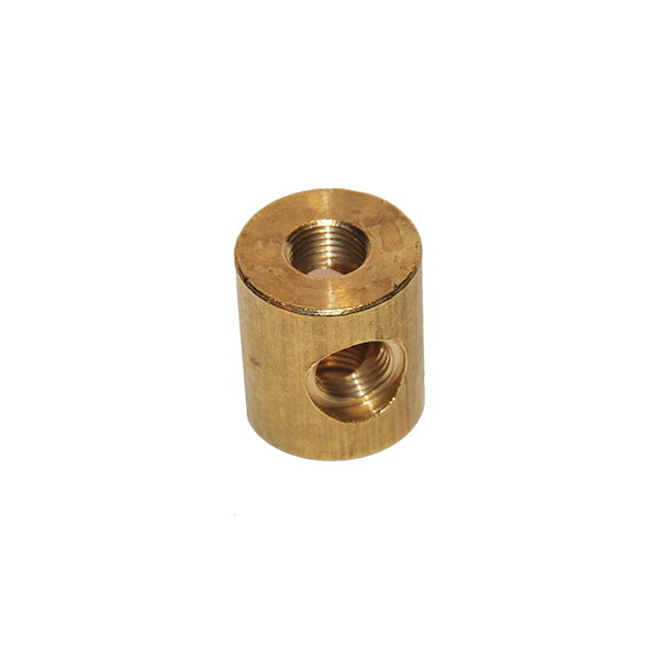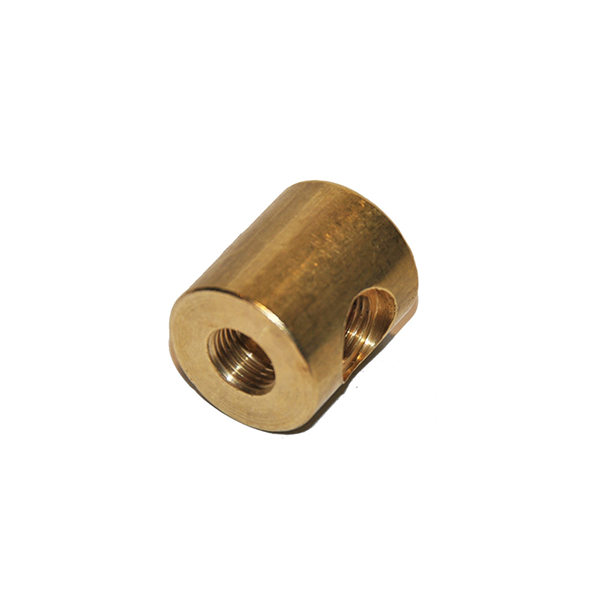Montagezubehör für Lampen, hergestellt aus Messing, in zylindrischer Form. Verfügt über 3 Ausgänge mit Innengewinde (Gewindesteigung 10/100 (Typ Lampen). Ein Ausgang an jedem Ende und ein weiterer in der Mitte. Dieses Teil erlaubt bis zu drei Lampenfassungen zu vereinen, um einen Fächer von Glühbirnen in einer Lampe zu kreieren. Es ist auch sehr nützlich für den seitlichen Kabelausgang bei Tischlampen, Zusammenfügen von Armen von Lampen und Strahlern, etc..